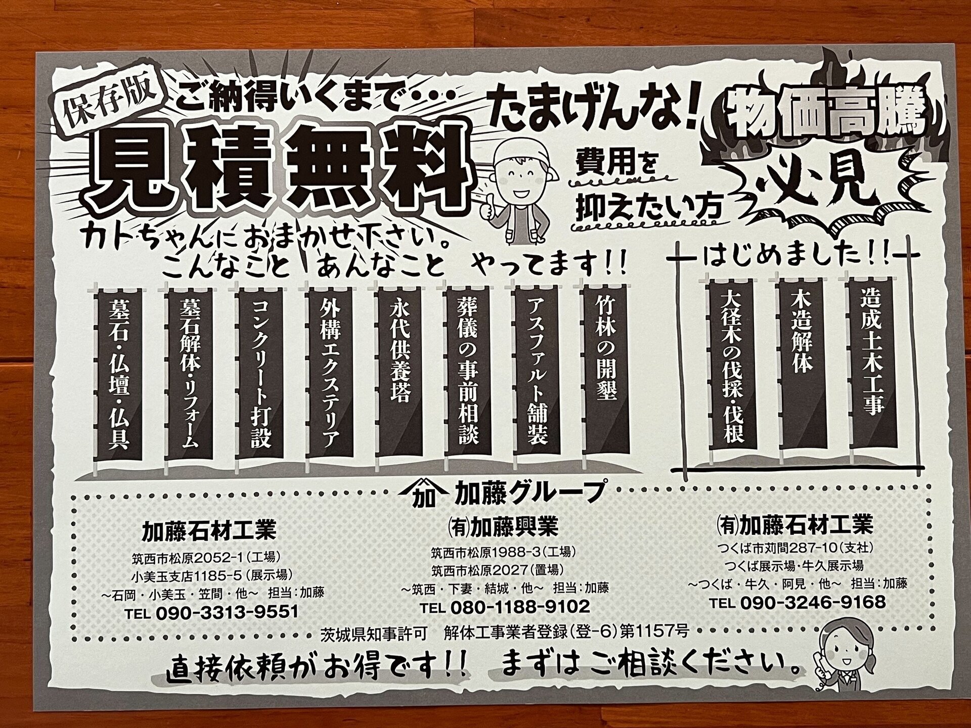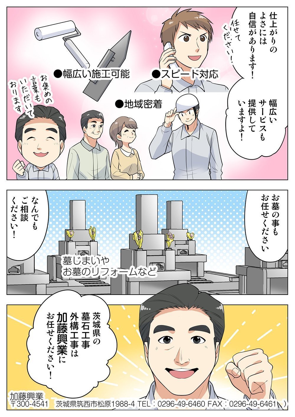 茨城県で墓石に関するご相談、お住まいの外構に関するご相談は有限会社加藤興業へお気軽にお問い合わせください。弊社は墓石工事・外構工事に関して豊富な経験と高い技術力を備えており、お客様のニーズに応えるサービスをご提供いたします。また、充実のアフターフォローもご用意しております。